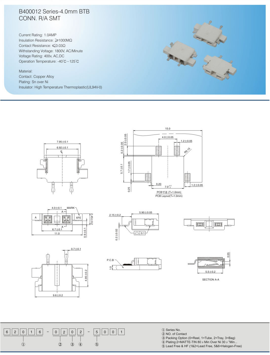 B400012 Series-4.0mm BTBCONN. R/A SMT