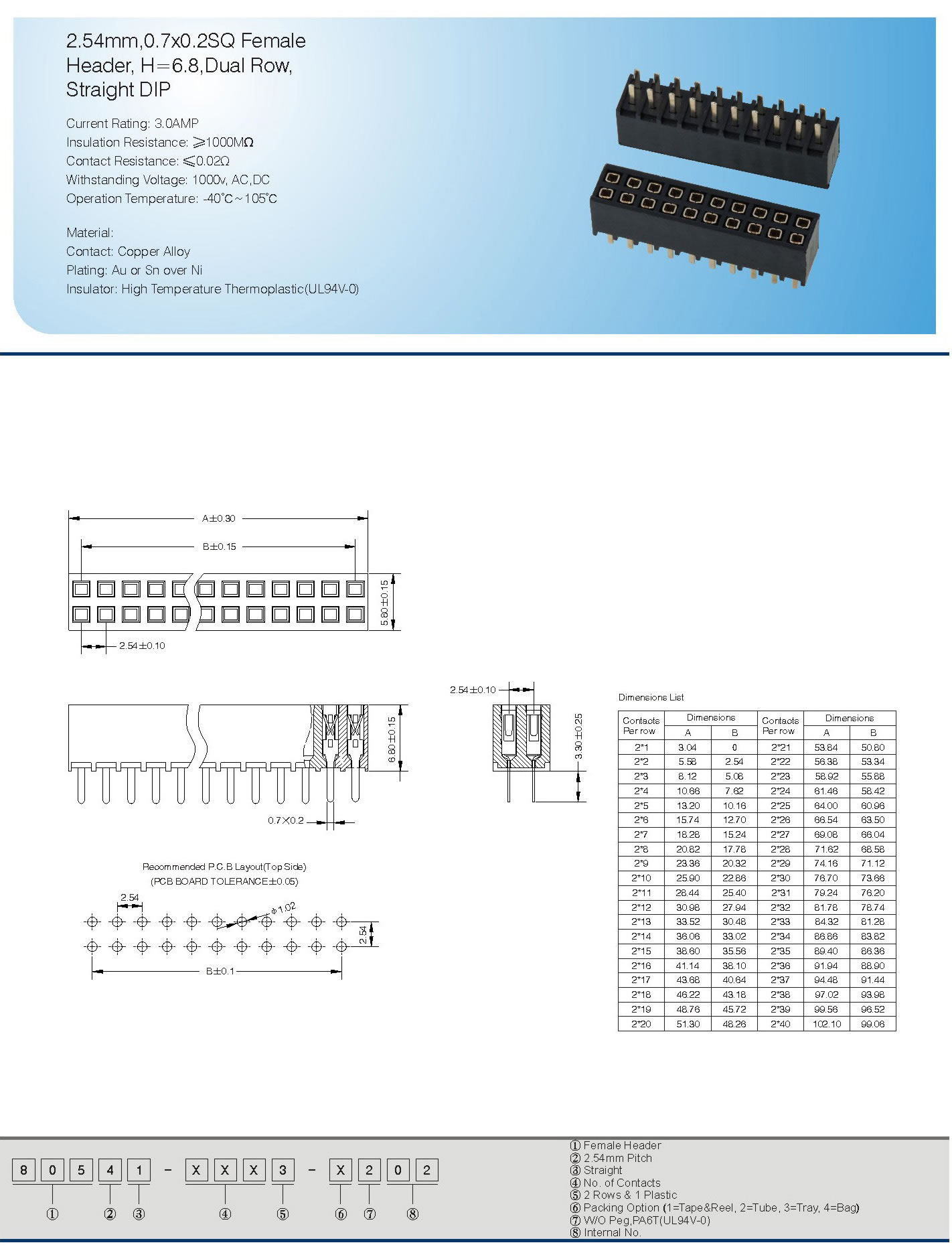 2.54mm,0.7xO.2SQ Female