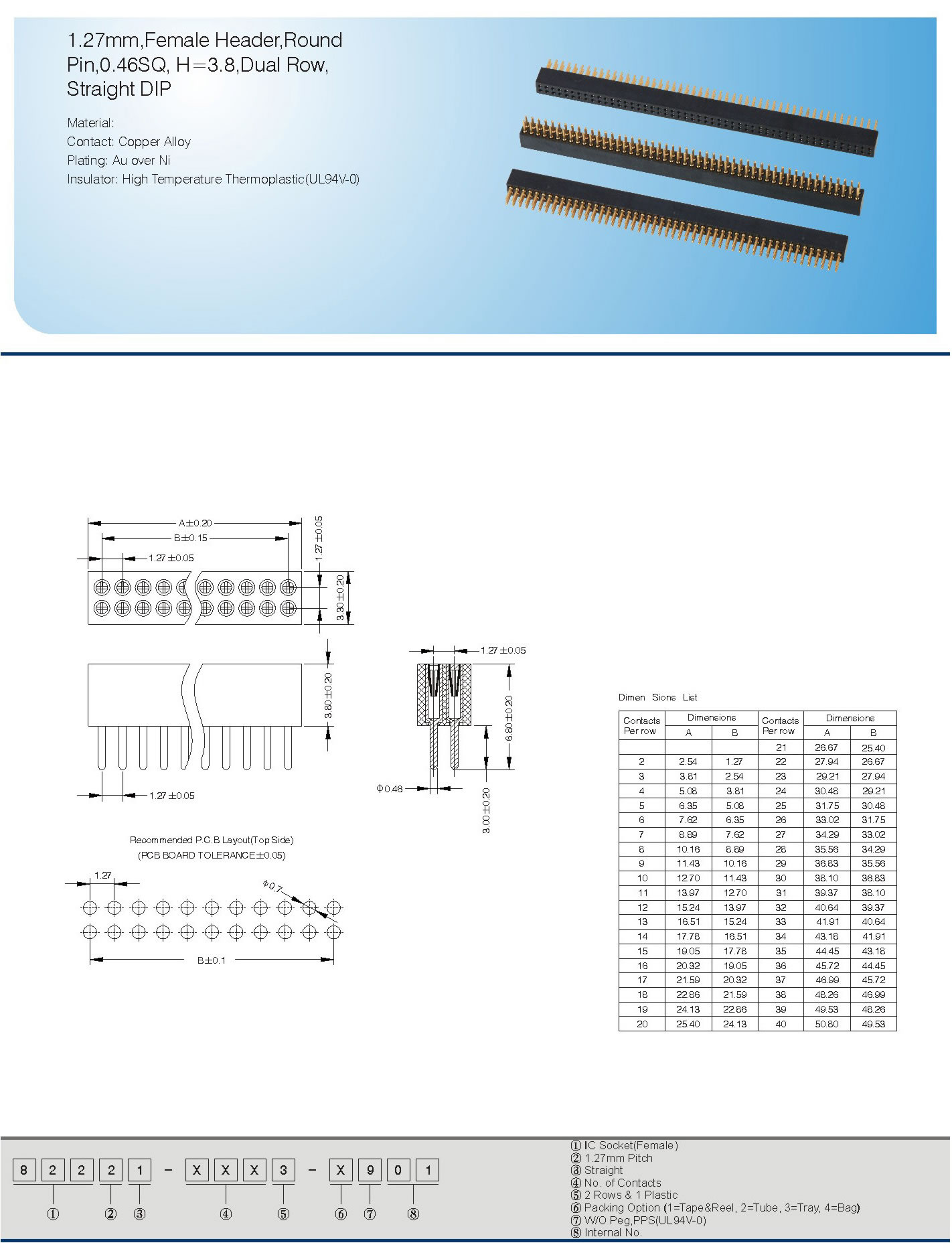 Pin,0.46SQ,H=3.8,Dual Row,