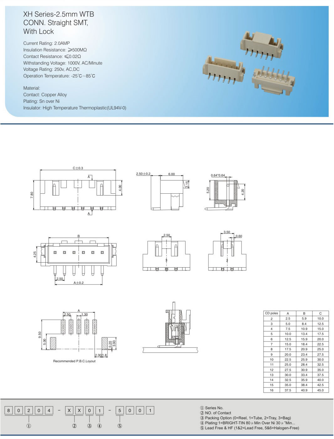 XH Series-2.5mm WTB