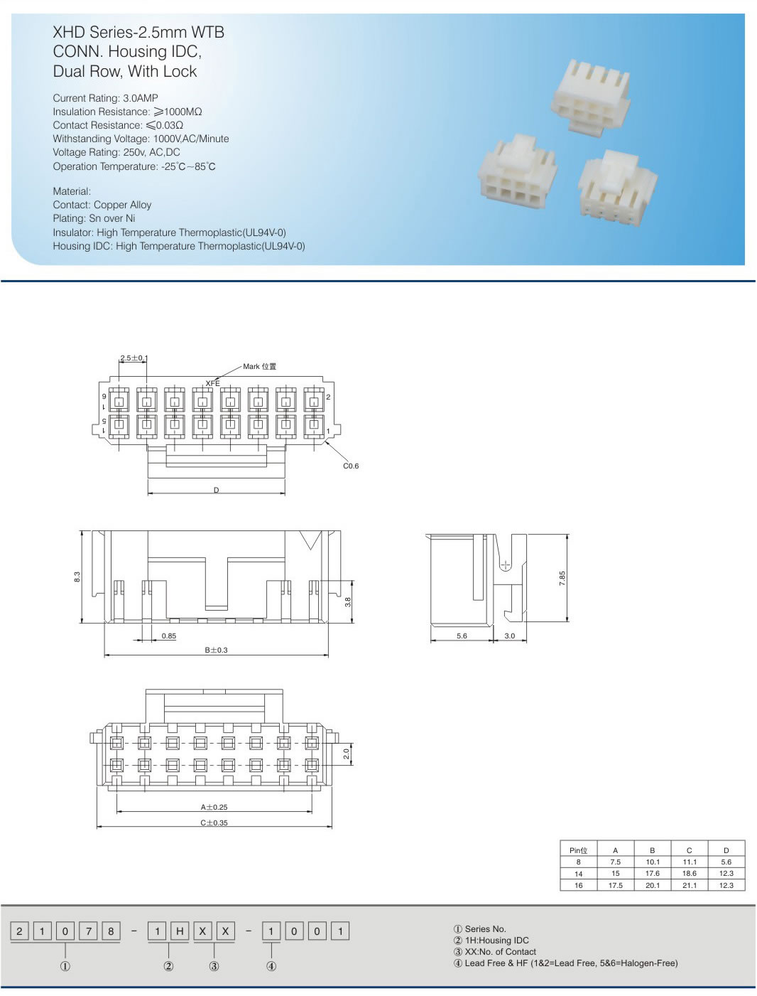 Housing IDC: High Temperature Thermoplastic(UL94V-O)